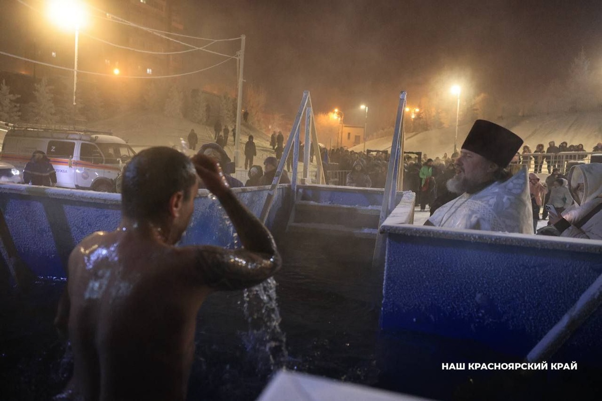 Первые красноярцы окунулись в крещенские купели Как пишет «Наш Красноярский край», чтобы окунуться в специально оборудованной купели у Никольского храма своей очереди ждут еще сотни красноярцев. Фото: Руслан Рыбаков / Наш Красноярский край ТВК