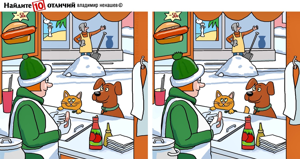 10 отличий для улучшения внимания и настроения. Зимняя загадка про горячие сосиски.