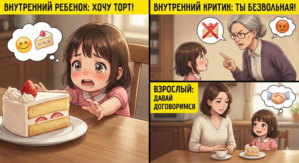 Внутренний Критик и Внутренний Ребенок: Кто сейчас тянется за тортом?