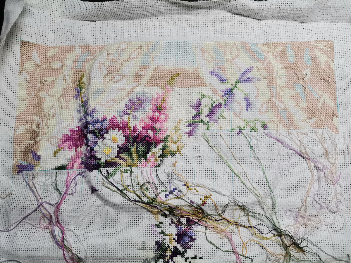 Вышивала Летний аромат от Чудесной иглы. Решила довышивать на них месячную норму и я это сделала, вышито 883,5 крестика с пересчетом пооукреста и даже немного бекстича было на ромашках.