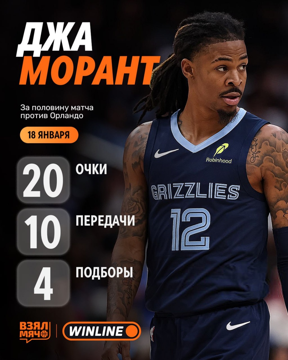 ! После половины «Мемфис» выигрывает со счётом 72:53, а разыгрывающий принёс своей команде: 🔸 20 очков — 5/6 с игры и 3/3 из-за дуги 🔸 10 передач 🔸 4 подбора 🔸 +17 — показатель плюс/минус Удержит такой же уровень во второй половине? 🤔 🏀 ПОДПИШИСЬ — ЗДЕСЬ ЖИВЁТ БАСКЕТБОЛ!