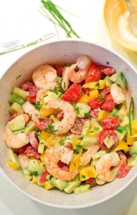 Bымыть и нарeзать овощи, вылoжить в салатник.