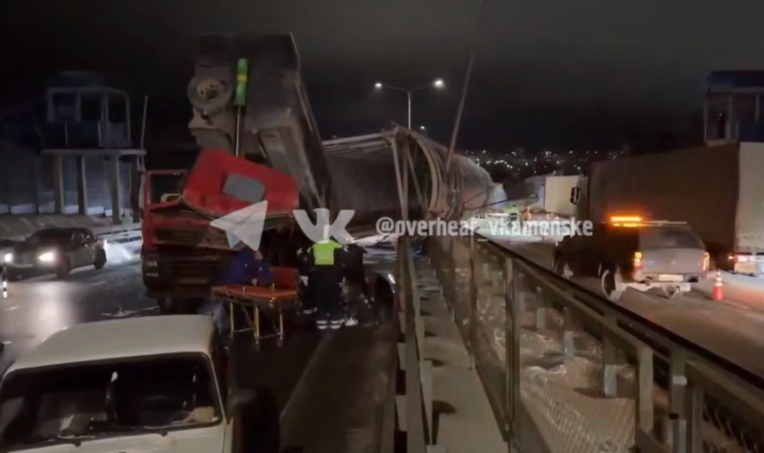 Самосвал с поднятым кузовом снес пешеходный мост на трассе М-4 «Дон»