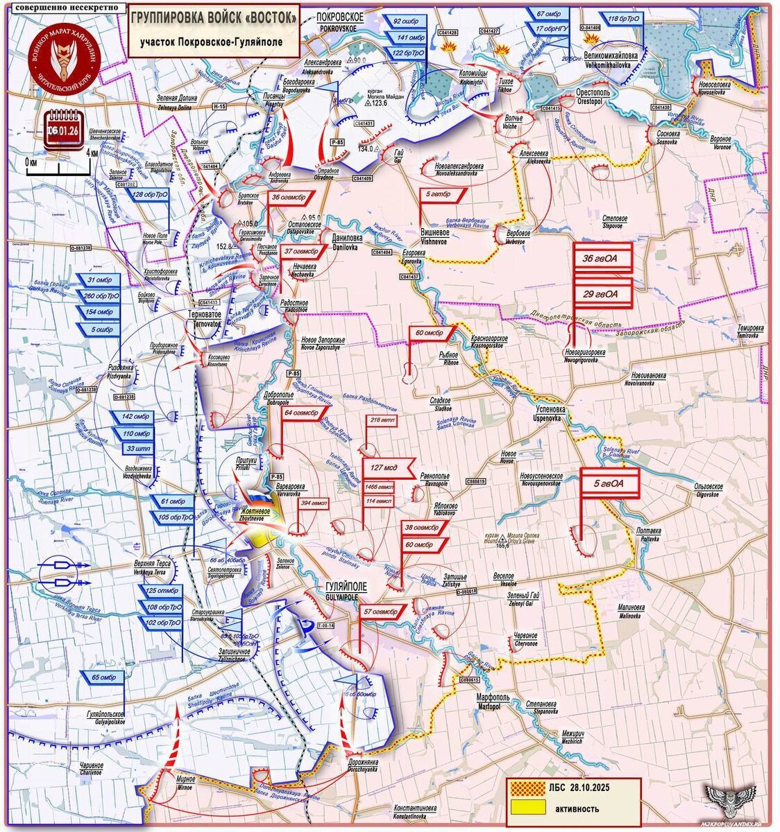 Карта боевых действий в районе Гуляй-Поле на 16.01.2026.