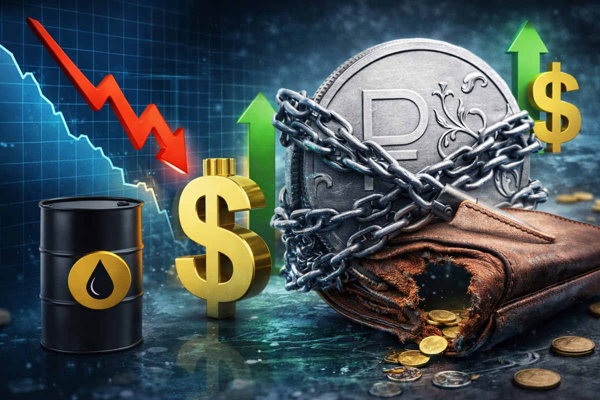 Январь 2026 начался с шока для экономики: морской экспорт российской нефти за первые 11 дней упал более чем на треть (до ~280 тыс. тонн в сутки вместо 455 тыс.), бюджет уже недосчитывается 232 млрд руб. нефтегазовых доходов только за месяц. Цена Urals болтается около 54–55 $ за баррель (при бюджете на 59 $), дисконт к Brent вырос до 10–18 $. Причины: новые санкции США (на Роснефть, Лукойл и танкеры), погода в портах и глобальный избыток предложения нефти.