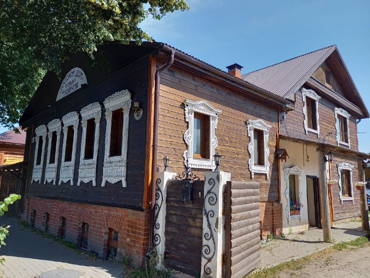 Итак, в Суздале мы остановились в Гостевом доме литейщика Никуличева, ул. Ленина, 172 (бронировала на Островке). Это реальный большущий старинный деревянный дом, достроенный и переделанный под мини-гостиницу в деревенском стиле, но со всеми удобствами.