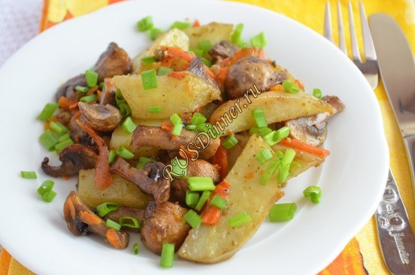 От автора: Шампиньоны с картошкой в духовке отличное дополнение к повседневным кулинарным блюдам, которые полюбились в вашем семейном кругу. Ингредиенты: Грибы шампиньоны - 300 гр. Картофель - 500 гр. Морковь - 50 гр. Чеснок - 4 зуб. Соль - 5 гр. Перец черный молотый - 5 гр. Прованские травы - 5 гр. Лук зелень - 1 пуч. Масло оливковое - 50 мл. Источник: https://rusdinner.ru/page/shampinony-s-kartoshkoj-v-duhovke