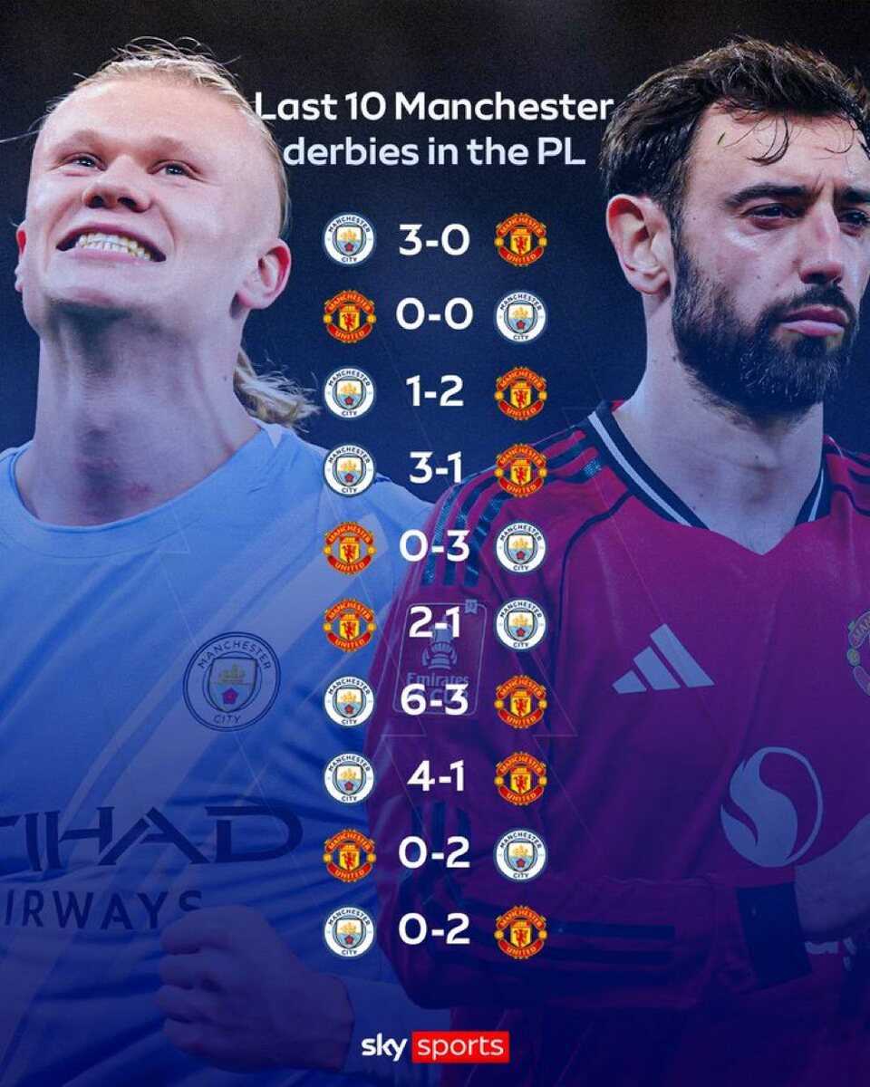 📌 | Последние 10 матчей между «Манчестер Юнайтед» и «Ман Сити» в АПЛ: