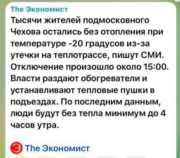 Когда у нас отключают свет, газ, воду когда вздумается. И не на пару часов, а на сутки, республиканские и местные власти молчат и не предпринимают никаких действий. Делают вид, что ничего не произошло. А тут — в новости — отключили свет на пару часов и власти уже раздают тепловые пушки и хоть что-то пытаются делать, а свет у них отключили всего-то на пару часов." #нам_пишут Подписаться на "Черновик" 2.0 | Обратная связь: @chernovik_1_bot