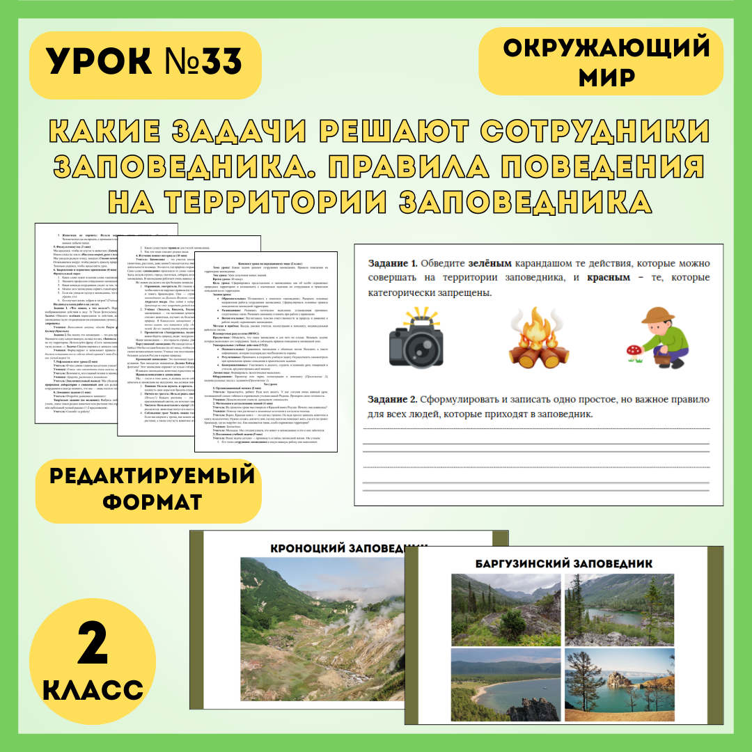 Каждый учитель начальных классов знает: тема охраны природы — это не только про «красивые цветочки», но и про понимание строгих законов, по которым живет дикая природа. Как донести до 8-летнего ребенка, что заповедник — это не просто парк, а «священный дом», где человек — лишь тихий гость? Чтобы сделать этот урок по-настоящему глубоким и запоминающимся, я подготовила полноценный методический комплект для 2 класса. Конспект урока №33 «Какие задачи решают сотрудники заповедника. Правила поведения на территории заповедника» построен как увлекательное расследование. Мы не просто перечисляем запреты, а объясняем их логику и знакомим детей с героическими профессиями людей, которые охраняют тишину лесов. Что входит в комплект: Урок завершается творческим моментом: каждый ученик формулирует свою «Заповедь гостя», превращаясь на минуту в хозяина заповедного леса. Весь комплект — от поминутного плана до карточек с ответами — уже ждет вас в «Магазине материалов» на Инфоуроке. Вам останется только
