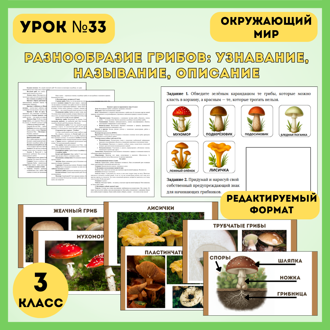 Каждый учитель начальных классов знает: тема грибов в 3 классе — это настоящий «микологический детектив». Дети уже знают, что грибы нельзя пинать, но когда дело доходит до строения грибницы или отличия ложного опенка от настоящего — начинаются сложности. Как превратить изучение темы «Разнообразие грибов: узнавание, называние, описание» в живое исследование, а не простое перелистывание учебника? Я подготовила готовый методический комплект, который закроет вопрос подготовки к этому уроку раз и навсегда. Этот материал — не просто конспект, а полноценный образовательный набор, созданный по стандартам ФГОС. 1. Сценарий урока «от и до»: