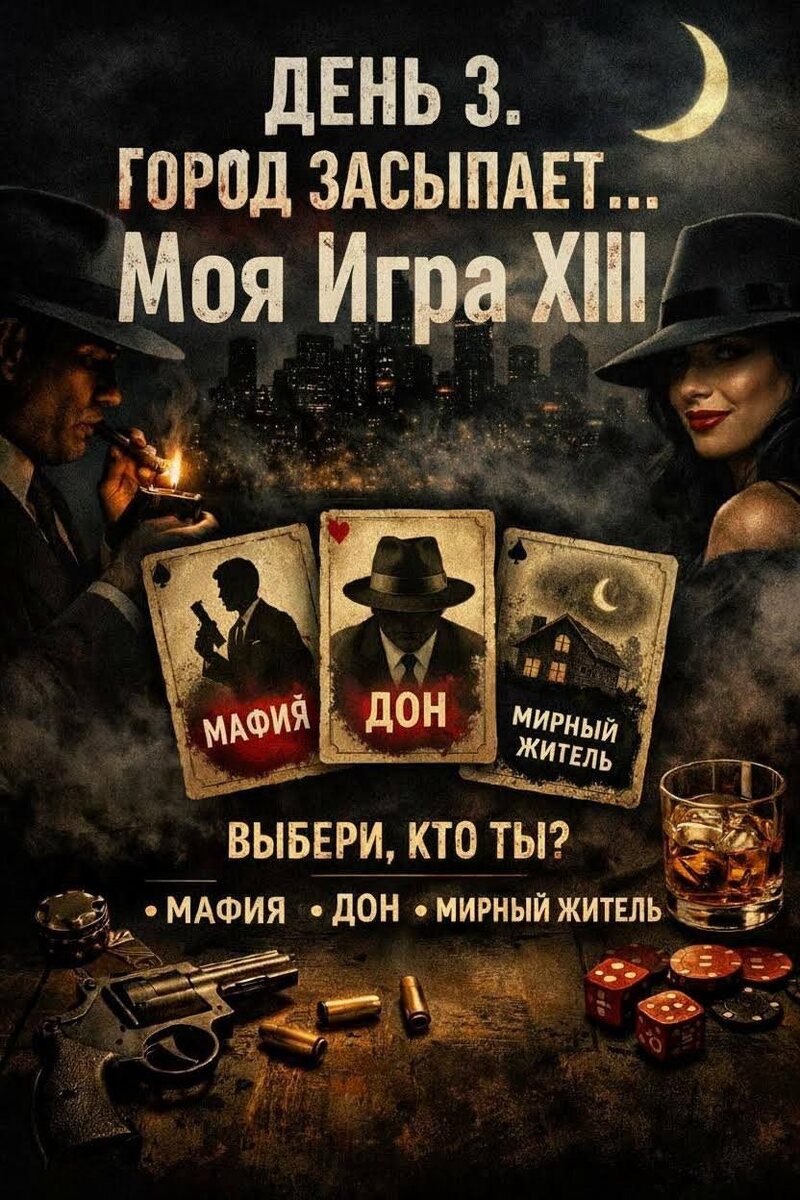 Мафия Город засыпает… Ночь пробуждает тех, кто действует в тени, и тех, кто наблюдает. Сегодня всё о выборе, риске и ощущениях. Кто ты этой ночью 🖤 Мафия ❤️ Дон 🤍 Мирный житель 💬 Напиши в комментариях, какого персонажа выбрал(а) и что чувствуешь рядом с ним. ⚠️ Если ты ещё не сделал(а) выбор — вернись в #день1@mygameXlll в #день2@mygameXlll сделай свой выбор и погнали дальше. Не бойся своих ощущений — именно они ведут игру #день3