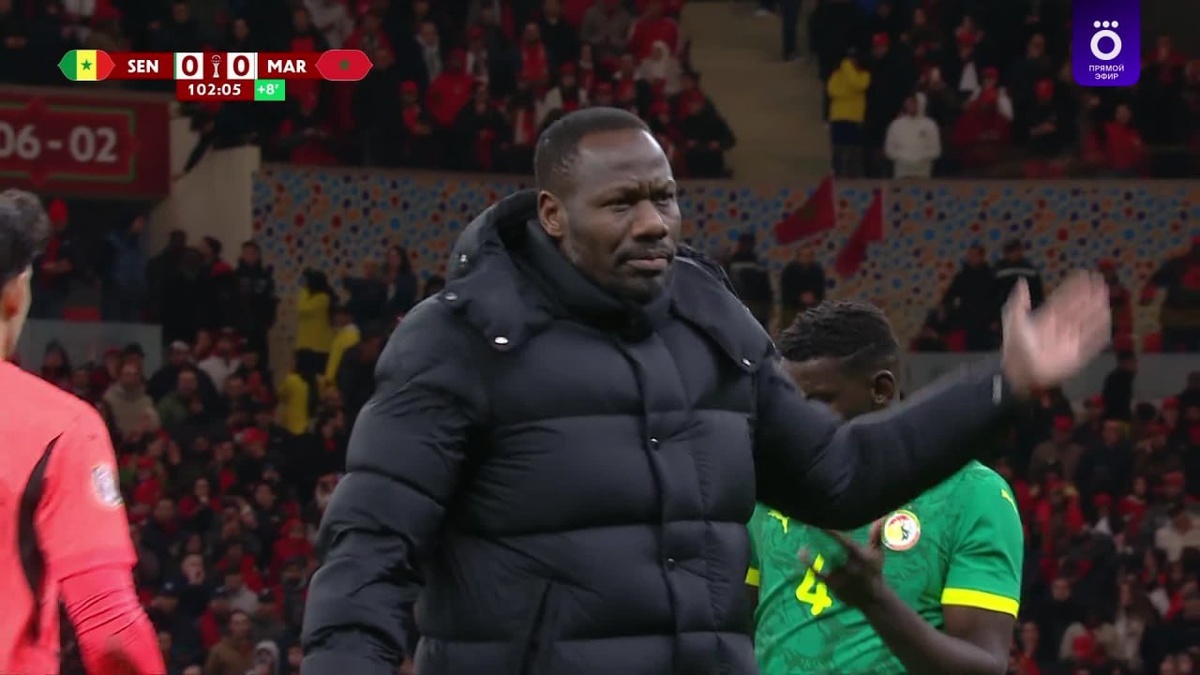 Главный тренер Сенегала пытается увести своих игроков в раздевалку в знак протеста против назначенного пенальти!