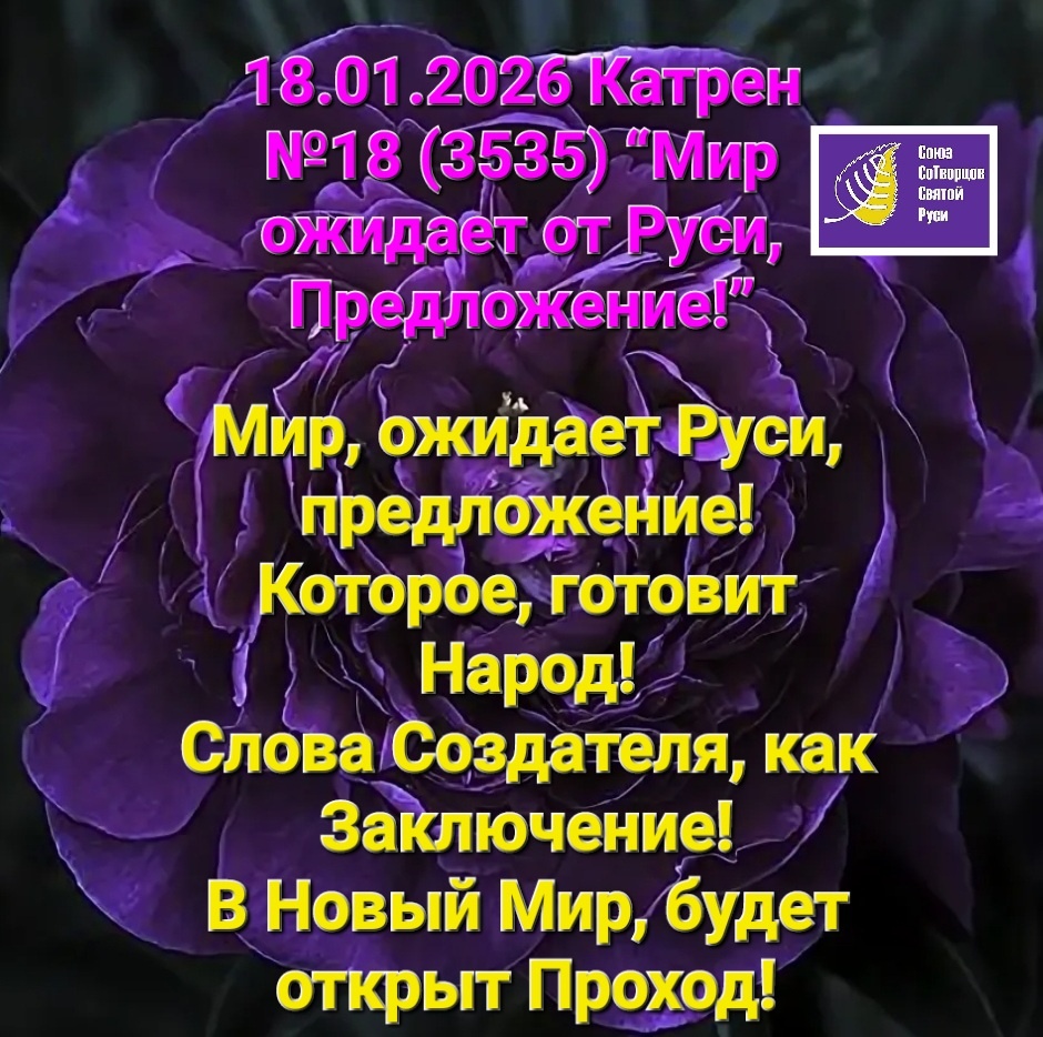 18.01.2026 Катрен №18 (3535) “Мир ожидает от Руси, Предложение!”