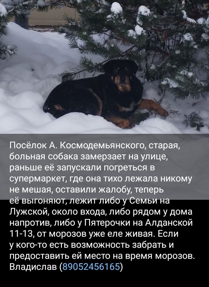 По нему написали 5 человек за неделю.. Дик - старый бездомный пес, который всю жизнь прожил в Косме, в морозы его пускали греться в магазин, но какая то вонючка нажаловалась и его перестали пускать. Местные волновались за него, но забрать его к себе, никто не захотел… Так и лежал Дик на снегу в морозы. Вот