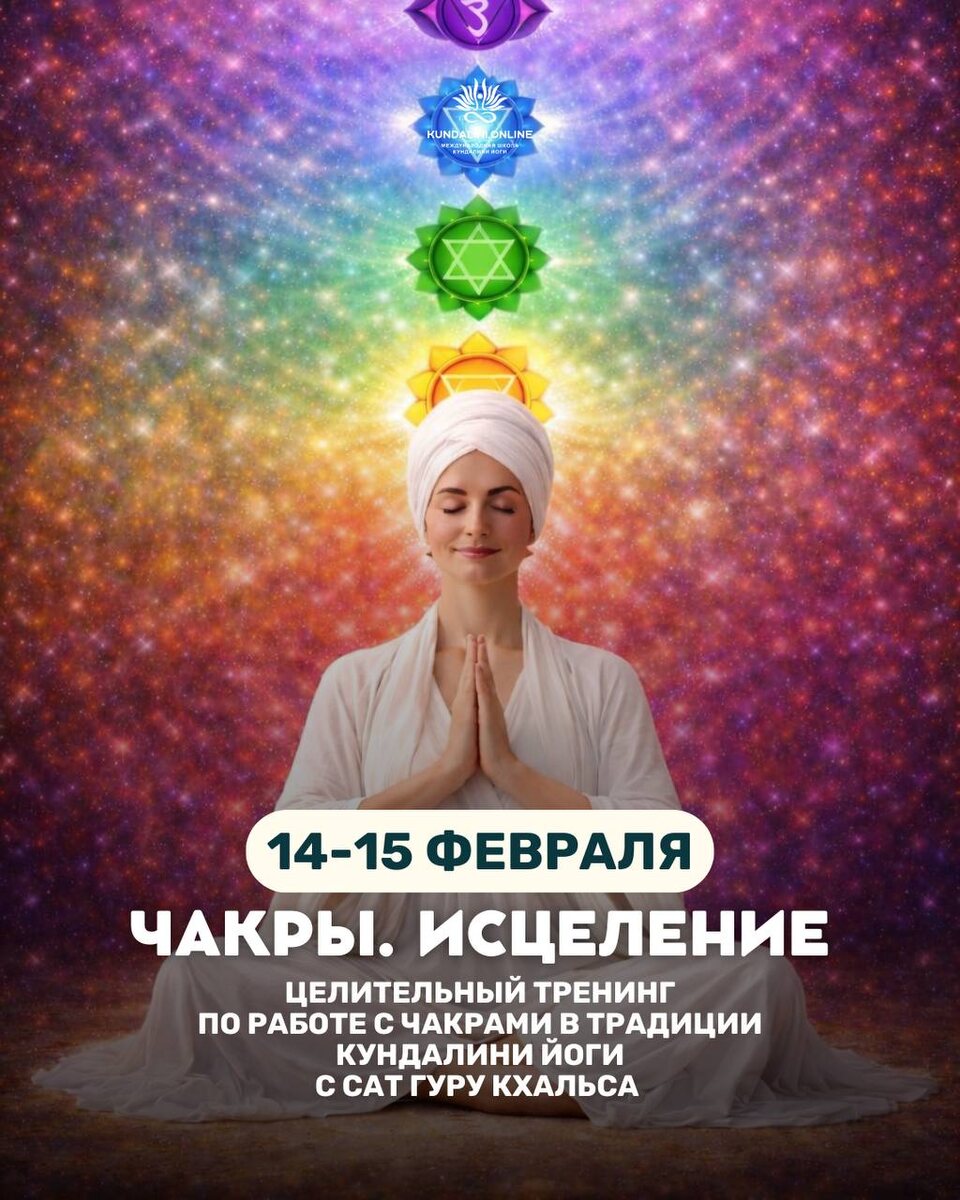 С 14 по 15 февраля пройдёт целительный тренинг по работе с чакрами с Сат Гуру Каур (прямая ученица Йоги Бхаджана). *Формат: Онлайн-практики в Zoom Чакры – это живая структура, через которую формируются наши решения, реакции, здоровье, способность зарабатывать, выстраивать отношения и чувствовать внутреннюю устойчивость Пройдя тренинг ты: •поймешь, почему в жизни повторяются одни и те же сценарии •увидишь, какая чакра отвечает за конкретную проблему •восстановишь баланс между телом, эмоциями, умом и духом Этот тренинг подойдёт тем, кто хочет глубже понять свою жизнь через работу с чакрами – как для личного опыта, так и для профессионального развития. Для учителей Кундалини Йоги и специалистов помогающих профессий. Что входит в обучение: 2 дня классов с сильнейшим учителем Кундалини Йоги — Сат Гуру Каур Диагностика чакр Сертификат о прохождении курса по чакрам от Школы Kundalini Online Конспекты классов и собрание медитаций Подробнее о программе тренинга, формате и условиях участия вы мо