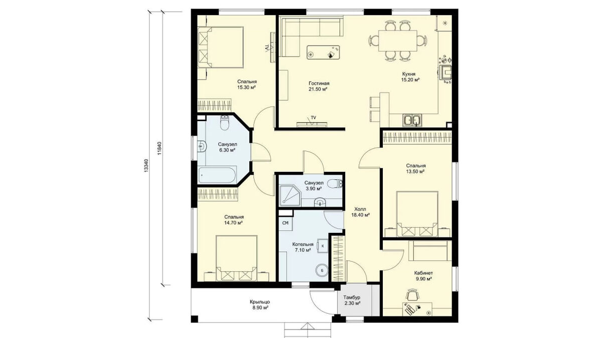 🏡 Представляем наш новый проект — БП-134! ✨🔑 Проект БП-134 — это уютный одноэтажный дом из железобетонных панелей с двухскатной крышей, общей площадью 136,9 м². 🏠💫 При входе вас ждет крыльцо и тамбур, который помогает сохранять тепло зимой ❄️🔥. Просторный холл ведет к четырем светлым спальням, гостиной с кухней и двумя санузлами 🛁🛋️. По желанию одну из спален можно превратить в кабинет для работы или учебы 💻📚. Также в доме есть отдельное помещение под котельную — для комфортного отопления и уюта зимой! ❄️🔥 Хотите узнать больше о проекте? Перейдите по ссылке: https://benpan.ru/project/bp-134/