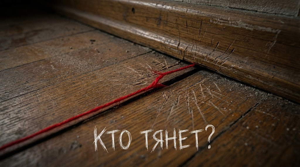 Красная нить тянется от недовязанного рукава через всю комнату, огибает диван и уходит в угол, где старый паркет чуть рассохся и отошел от плинтуса.