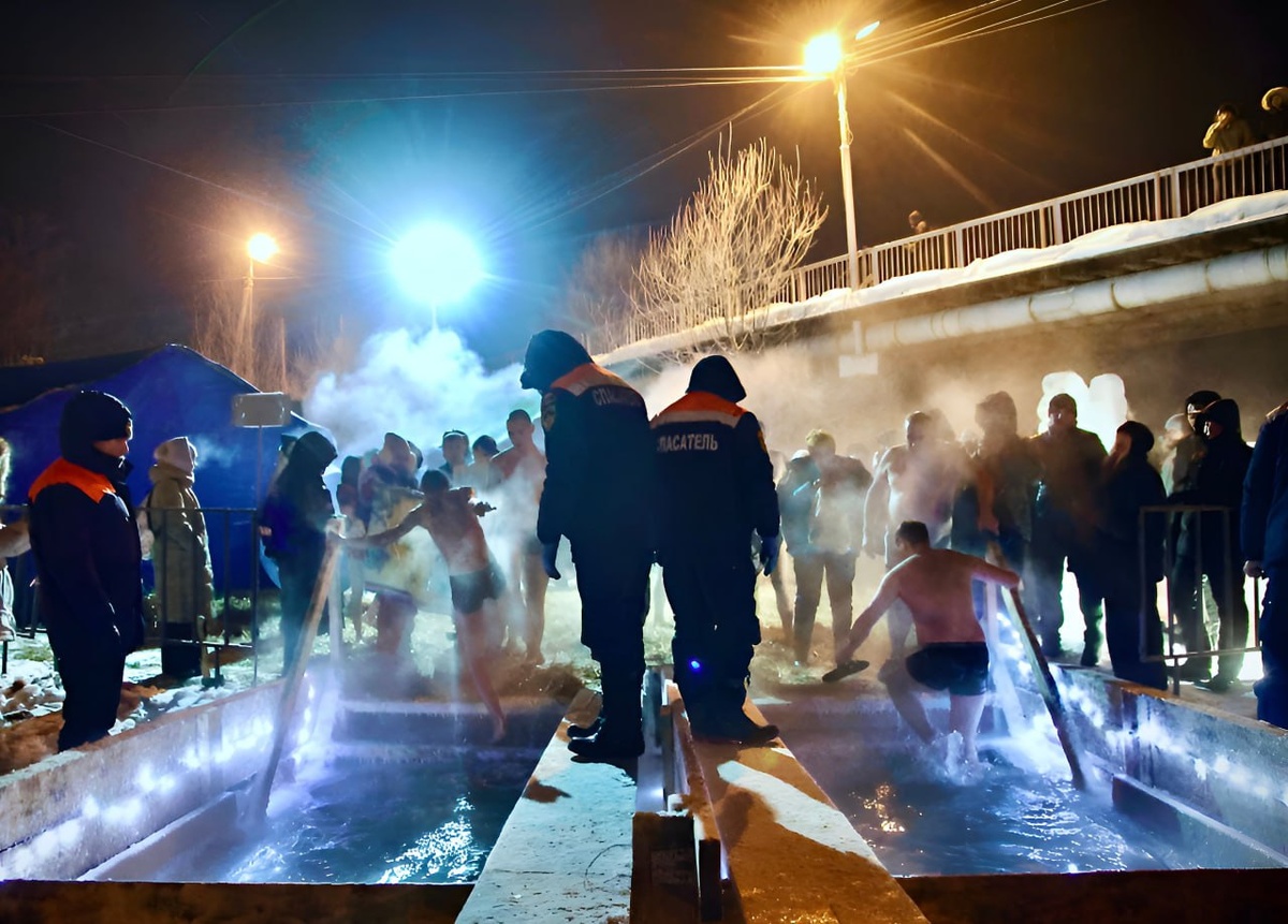 А вот так вот крещенские купания начались в Горно-Алтайске. Брр, морозище знатный конечно.