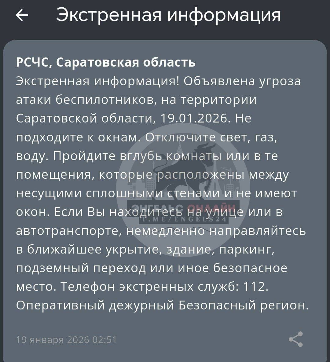 ⚡️РСЧС предупреждает об угрозе атаки беспилотников.