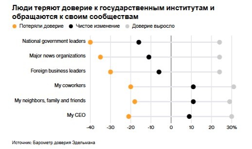 По данным коммуникационной компании Edelman, люди во всём мире становятся всё более настороженными по отношению к правительствам и
