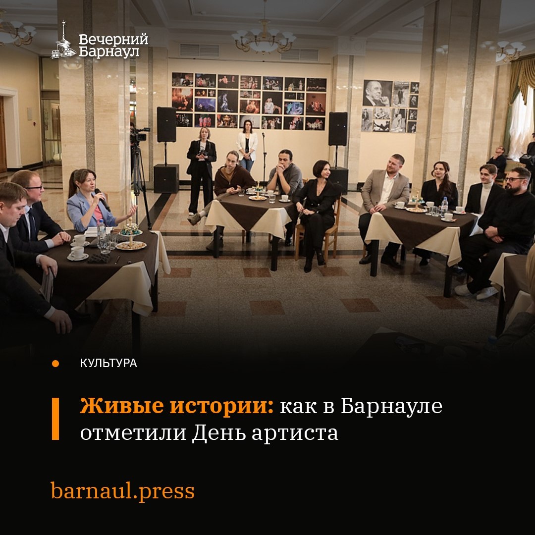 деятелей. В Барнауле праздник проходил в формате встречи артистов — лауреатов губернаторской премии имени Валерия Золотухина в области театрального искусства с главой региона Виктором Томенко. Как отметили в Министерстве культуры, цель мероприятия в праздничный день была подчеркнуть высокую социальную значимость, миссию и человеческую ценность профессии артиста, создать диалог между властью и творческим сообществом, услышать живые истории участников мероприятия. 📌 Подробнее на сайте. 📬 Подписывайтесь на наш канал в MAX @barnaul
