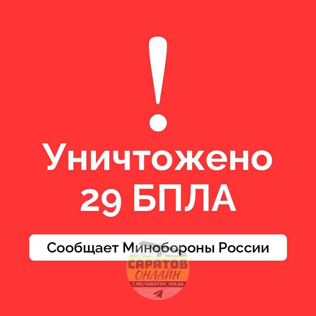 ⚡️Над Саратовской областью средства ПВО ликвидировали 29 беспилотников