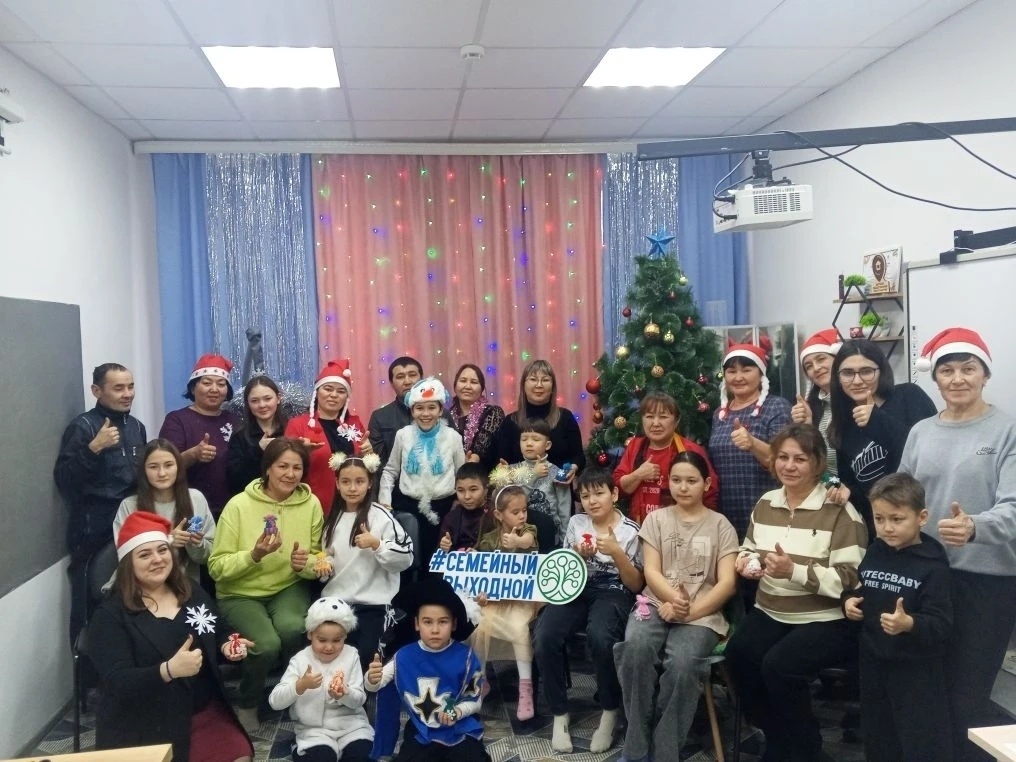 Вот и прошёл очередной предновогодний Семейный выходной в Акъярской Службе семьи, и в этот раз он был посвящен теме "День большой семьи". Начался праздник с зажигательного флешмоба, в котором приняла участие вся дружная семья Службы семьи. Энергия и позитив просто переполняли зал, задавая тон всему мероприятию. После танцевального разогрева мамочек ждал небольшой, но очень полезный тренинг. Обсуждались важные вопросы семейных взаимоотношений, обменивались опытом и получали новые знания, которые, безусловно, пригодятся в повседневной жизни. Далее все погрузились в волшебный мир творчества на увлекательном новогоднем мастер-классе "Новогодняя шапочка". Под чутким руководством мастера каждый смог создать свой уникальный праздничный аксессуар, проявив фантазию и креативность. В воздухе витала атмосфера творчества, вдохновения и предвкушения праздника. В завершении нашего Семейного выходного все вместе водили хоровод вокруг пушистой ёлочки, украшенной яркими огнями и игрушками. Дети с удо