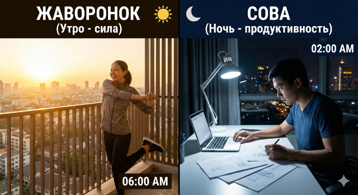 Для истинной Совы подъем в 7:00 равносилен тому, как если бы Жаворонка заставили вставать в 03:00 ночи.