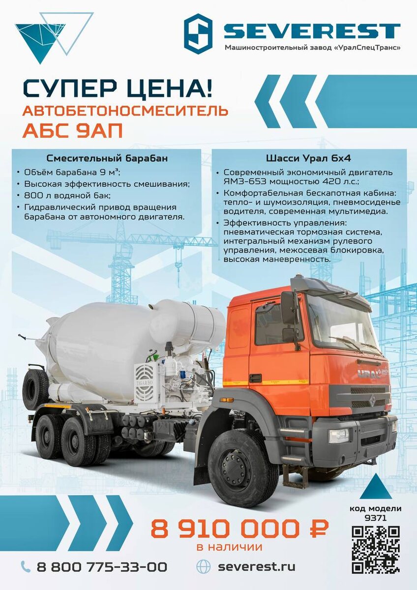 ! Только сейчас и только для вас — СУПЕРЦЕНА на мощный автобетоносмеситель АБС 9АП! ▪️Высокая вместимость: объем барабана 9 м³ ▪️Мощный двигатель: ЯМЗ-653 - 420 л.с. ▪️Модернизированная бескапотная кабина Ваша строительная техника должна быть не только надежной, но и доступной! Не упустите шанс улучшить свой автопарк с максимальной выгодой. Спешите, предложение ограничено! Подробнее о модели на нашем сайте ➡️ код модели 9371 Свяжитесь с нами, чтобы узнать все подробности: 📱Телефон: 8-800-775-33-00 🌐 Сайт: severest.ru SEVEREST - быть сильнее обстоятельств! #severest_абс #бетон #автобетоносмеситель #абс #спецтехника #строительство #лизинг #строительнаятехника #миксер