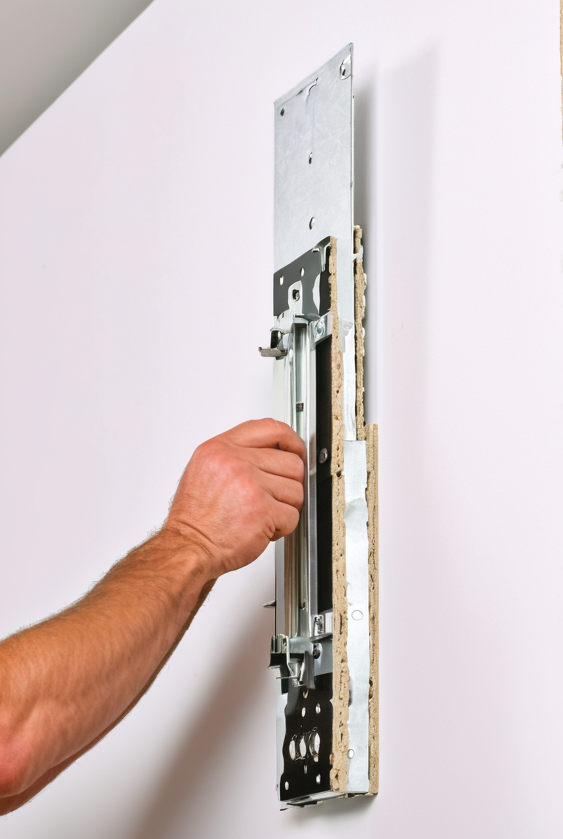 Технология монтажа в пустотелую конструкцию: сверление отверстия и правильная установка кронштейна с креплением для двойного ГКЛ