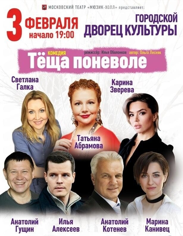 » ✔ Гастрольный спектакль Московского театра «Мюзик-холл» ✔ Поставлен по мотивам пьесы Сергея Белова (авторская редакция Ольги Лесняк) ✔ Актёрский состав: Анатолий Котенёв, Татьяна Абрамова, Анатолий Гущин, Илья Алексеев, Карина Зверева, Светлана Галка, Марина Канивец ✔ Режиссёр: Илья Оболонков 📅 Когда: #3_февраля, 19:00 ⛳ Где: Городской Дворец Культуры, ул. Ленина, 85 💳 Стоимость: от 1900 до 4500 ₽ Билеты 👉 Афиша Хабаровска. Куда сходить, экскурсии