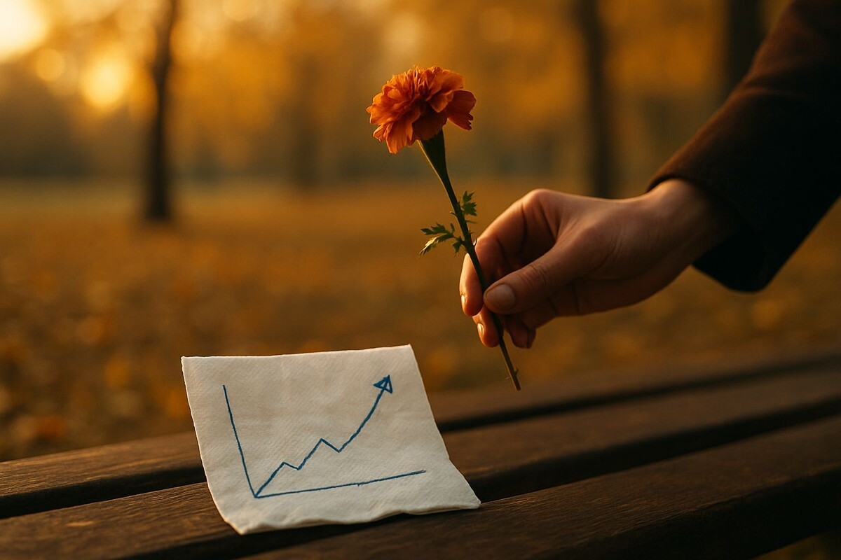 С Артёмом они не стали «парой» сразу. Были долгие разговоры. Осторожные прогулки. Смех, который возникал спонтанно, а не по графику. Однажды, гуляя по осеннему парку, он вдруг остановился, подошёл к клумбе, где отцветали последние бархатцы, и сорвал один хиленький цветок.— На, — протянул он ей. — Без сметы. Чистая диверсификация.