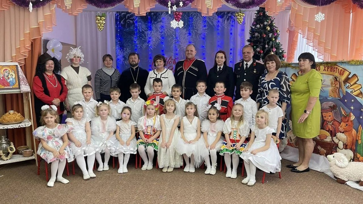 В казачьем детском саду № 53 станицы Ивановской проведение «Рождественских встреч» стало тёплой и любимой традицией. Праздник прошёл в особой атмосфере радости, искренности и душевного тепла. На утреннике присутствовали почётные гости: настоятель храма иконы Божьей Матери «Всех Скорбящих Радость» протоиерей отец Виталий; начальник штаба Полтавского РКО Константин Владимирович Кацалов; специалист Красноармейского отделения Союза казачьей молодёжи Кубани Анна Михайловна Утешева; казак-наставник Сергей Александрович Помеляйко; преподаватель православного центра «Радость моя» Елена Алексеевна Кива. Воспитанники читали стихи, пели рождественские песни и колядки. 📝Отец Виталий рассказал детям о Рождественской звезде и чуде рождения Богомладенца, поздравил всех с Рождеством и благословил на добрые дела. Гости поблагодарили педагогов и детей за праздничную программу и отметили важность сохранения духовных и казачьих традиций. 👶Праздник получился добрым и трогательным, объединив детей и р