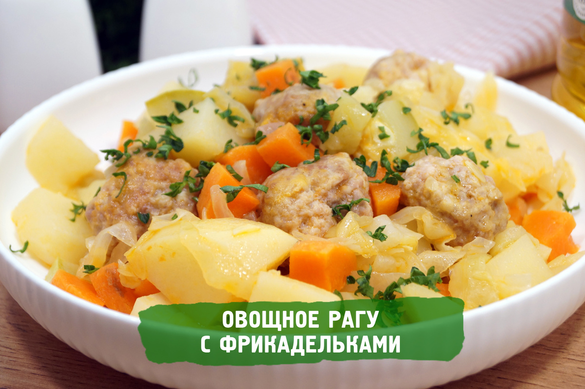 Овощное рагу с фрикадельками Ароматное овощное рагу с фрикадельками из мясного фарша и свежими овощами – этот простой рецепт, который покорит вас своим богатым вкусом. Фрикадельки томятся вместе с овощами, пропитывая их своим соком. Это блюдо будет беспроигрышным вариантом для любого обеда или ужина. Подавайте горячим, присыпав рубленой петрушкой. Время приготовления: 40 минут. Ингредиенты: 400 мл воды, 400 г мясного фарша, 100 г белокочанной капусты, 3 ст. ложки натурального подсолнечного масла ТМ «Алейка», 2 ст. ложки томатной пасты, 2 ст. ложки муки ТМ «Алейка», 2 картофелины, 1 луковица, 1 морковь, 1 кабачок, 1 ч. ложка соли, 1 щепотка черного молотого перца, 1 щепотка сахара, зелень петрушки по вкусу. Приготовление: Приятного аппетита!