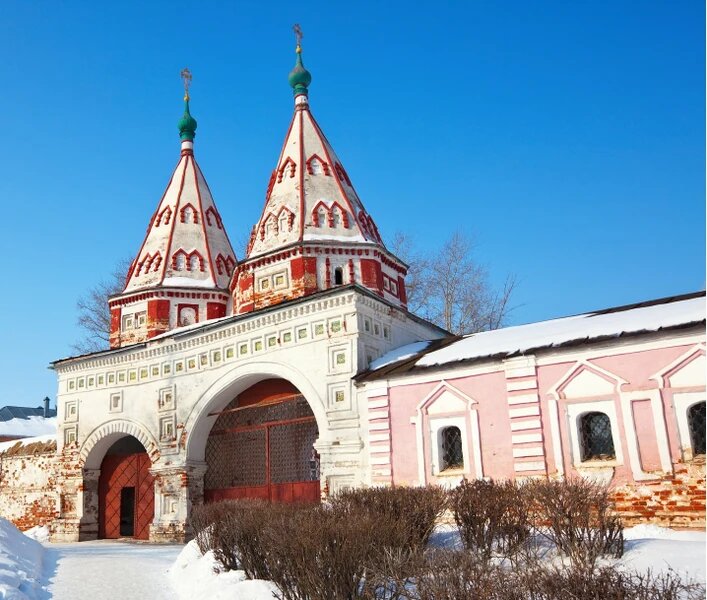 Александровский монастырь в Суздале — это не просто исторический памятник, а место, где время будто замерло. Зимой, когда снежный покров мягко укрывает монастырские стены, атмосфера здесь особенно волшебная. Ледяные узоры на окнах придают старинным церквям особый шарм, а звуки звона колоколов разносятся по заснеженным просторам.