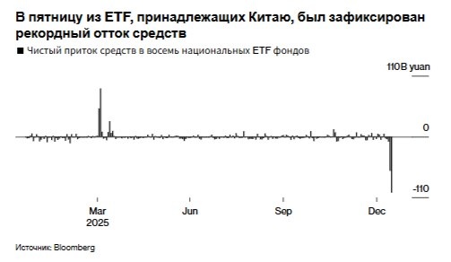 средств, что свидетельствует о том, что власти принимают меры для сдерживания риска образования пузыря. В пятницу отток средств из восьми ETF-фондов, отслеживаемых Bloomberg, в том числе из Huatai Pinebridge CSI 300 Index ETF и E Fund ChiNext ETF, составил рекордные 101 млрд юаней (14,5 млрд долларов США). Хотя участие государственных фондов будет очевидно только из отчётности, аналитики и трейдеры считают эти потоки средств доказательством того, что правительство действует, чтобы охладить рынки. Рекордный отток средств подряд — это первый явный признак того, что национальная команда не просто придерживается стратегии «купи и держи», а, похоже, активно работает на рынке, сглаживая колебания как в сторону повышения, так и в сторону понижения. Это происходит на фоне растущей обеспокоенности по поводу перенасыщения и спекуляций в таких секторах, как коммерческие ракеты. В пятницу Управление по надзору за ценными бумагами пообещало усилить контроль за манипулированием рынком и предотвра