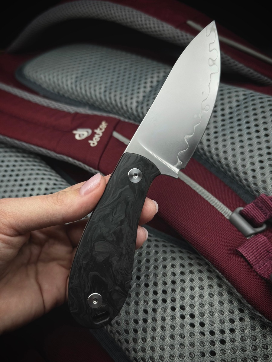 "? Есть немного в наличии. Это лёгкий и стильный горфикс с клинком из ламината SLD. На рукояти накладки из хаотичного карбона. В комплекте ножны из кайдекса. Общая длина: 180 мм Длина клинка: 80 мм Вес: 110 г. ‼️Вести диалог только с @burlax1