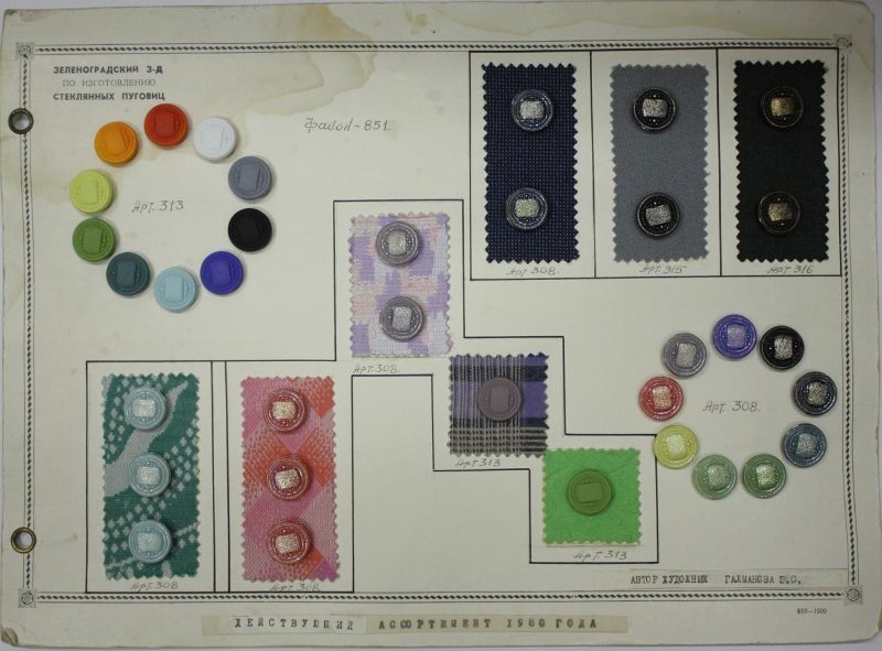 Действующий ассортимент завода по изготовлению стеклянных пуговиц в 1980 году. Фото Галмановой З.С. из архива Музея Зеленограда