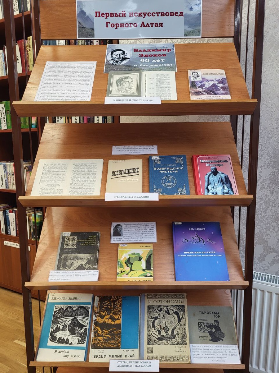 Книжная выставка в Национальной библиотеке предлагает взглянуть на историю становления алтайской живописи через призму трудов Владимира Эдокова. Его вклад в культуру региона сложно переоценить: будучи первым дипломированным искусствоведом, он стал связующим звеном между художниками и широкой публикой. Эдоков не просто анализировал картины — он «продвигал» творчество современников, опубликовав более 300 материалов на русском и алтайском языках. Его работы «Очерки истории изобразительного искусства Горного Алтая» и серия книг «Возвращение мастера» сегодня являются настольными для любого исследователя Сибири. Особое место на выставке занимает сборник «Яркие краски Алтая», изданный в 2021 году. Это наиболее полное собрание текстов Эдокова, которое позволяет проследить, как развивалось декоративно-прикладное и изобразительное искусство региона на протяжении десятилетий.