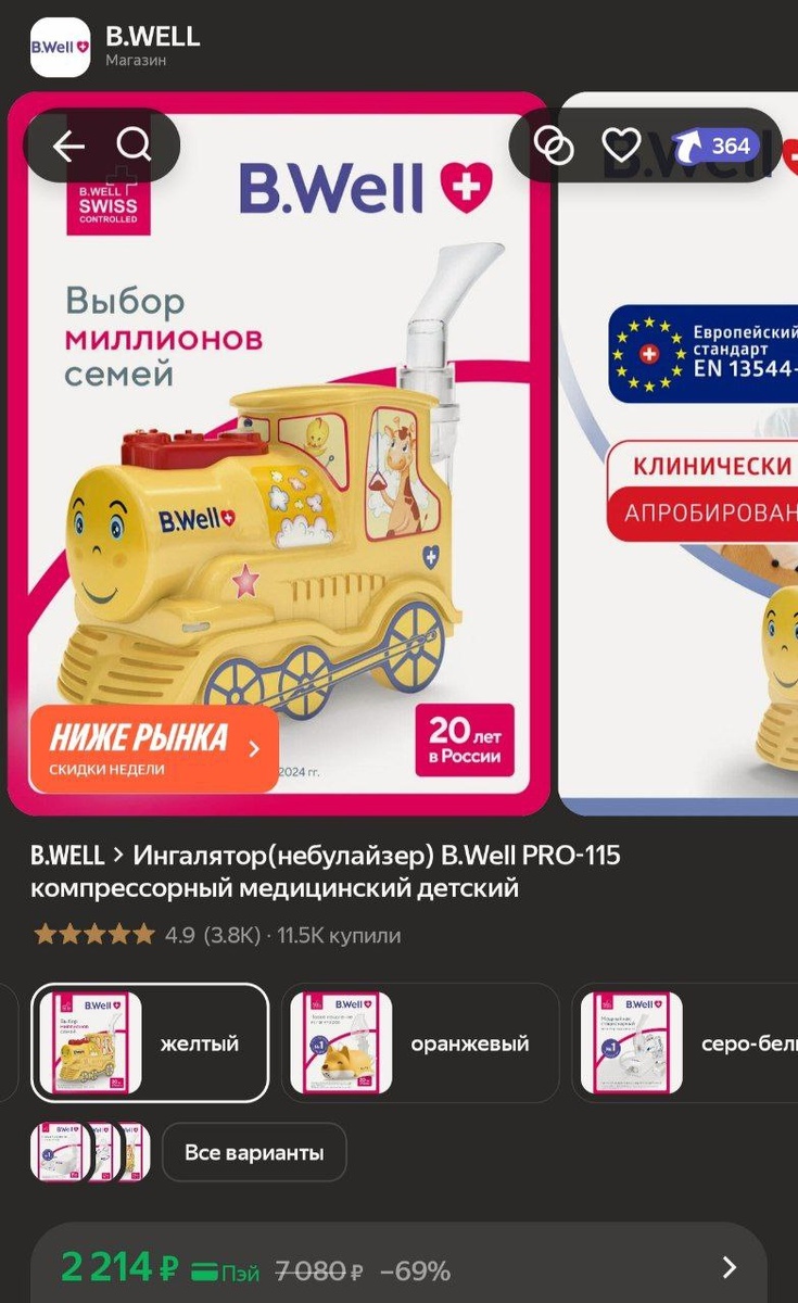 Ингалятор(небулайзер) B.Well PRO-115 компрессорный медицинский детский