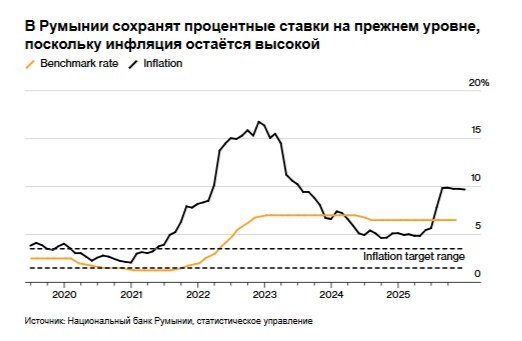 Власти Румынии, скорее всего, сохранят одну из самых высоких процентных ставок в Европейском союзе, чтобы сдержать инфляцию, которая