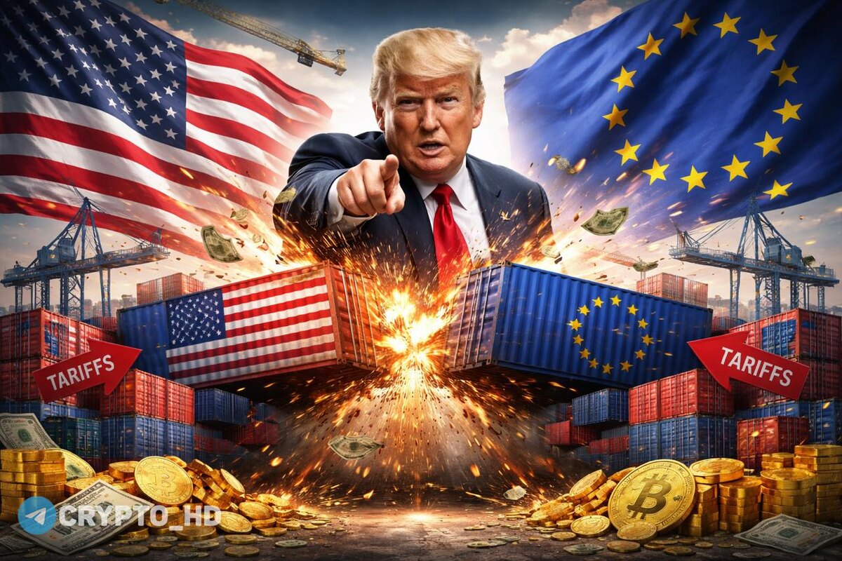 🇺🇸🇪🇺 Торговая война США и ЕС набирает обороты. Дональд Трамп заявил о введении дополнительных тарифов против европейских стран, если Соединенным Штатам не разрешат приобрести Гренландию. В то же время в ЕС рассматривают масштабные ответные меры. Что происходит: ➥ США угрожают ввести дополнительные тарифы в размере 10% на импорт из Европы с 1 февраля, с последующим повышением до 25% с 1 июня. ➥ ЕС рассматривает ответные меры против США на сумму до $108b. ➥ Возможны как прямые пошлины, так и ограничения для американских компаний. ➥ В Европе предупреждают о риске «опасной нисходящей спирали» для трансатлантических отношений. Реакция рынков: ➥ Инвесторы уходят в защитные активы. ➥ Растут Золото, облигации, иена и швейцарский франк. ➥ Доллар слабеет на фоне политической неопределенности. ➥ Биткоин при этом снижается, следуя общему risk-off настроению. Ранее: - США нуждаются в Гренландии - угрозы Трампа Cryptо Headlines