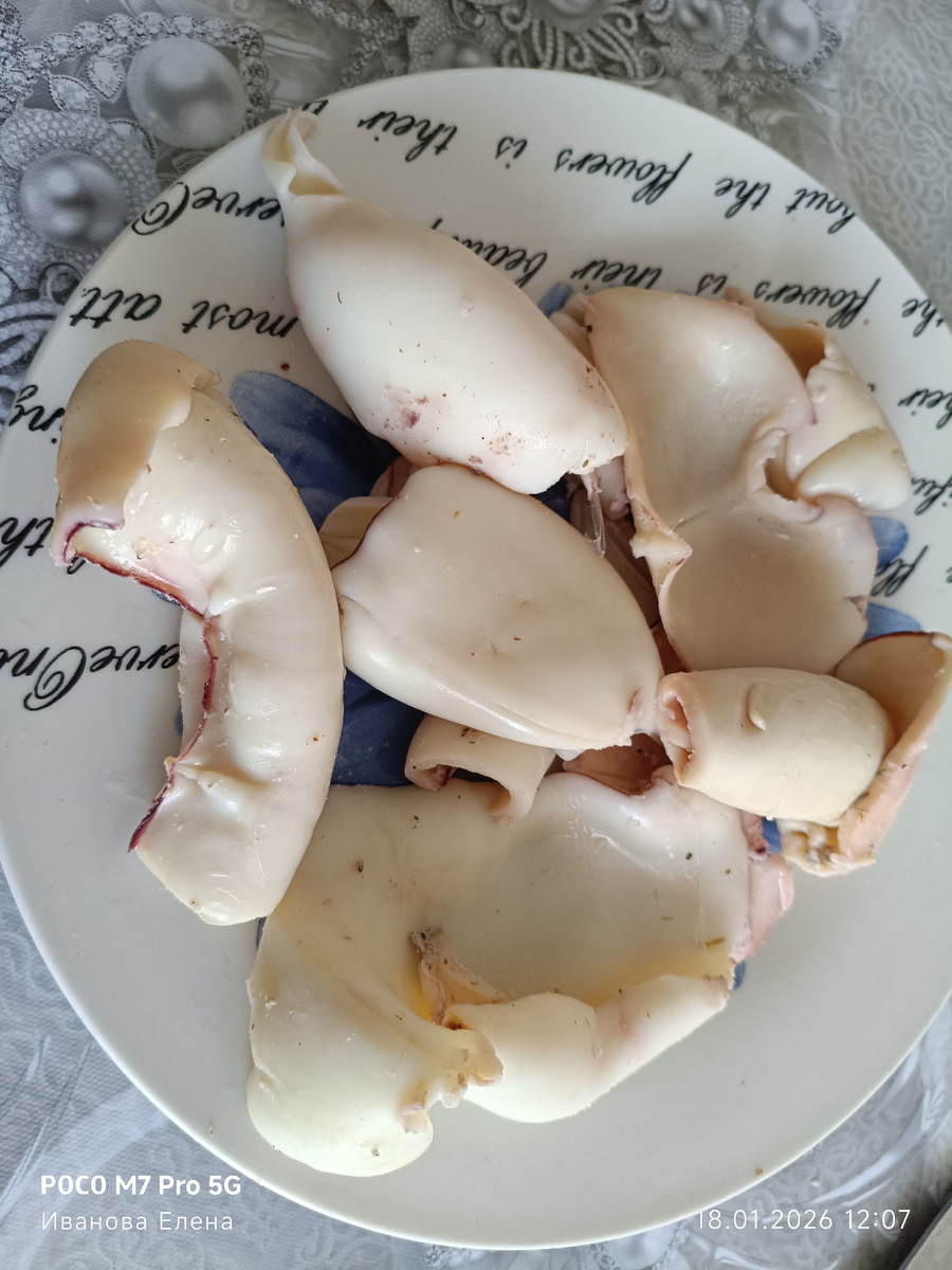 День сегодняшний я ждала и время торопила. Сегодня я могу всем сказать: «Доброе утро!» Оно на самом деле для меня доброе, по сравнению с последними четырьмя днями мое самочувствие сегодня пошло на улучшение. Была в поликлинике, врач сказала, что в данный момент я уже не представляю ни для кого опасность по поводу вируса, а на момент начала болезни была ли я заразна? Как-то неопределенно пожала плечами и сказала, что если у близких, с кем контактировала, начнутся какие-либо симптомы, то сразу ставить врачей в известность, что был контакт с больным пневмонией. Анализы с характерной картиной для пневмонии, больничный минимум 14 дней, дальше зависит от анализов и флюорографии. Вчера что-то я совсем расклеена была и больше эмоционально, чем физически, бывает такое, как накатит, но у меня быстро проходит, тем не менее Евгений меня вчера полностью освободил от кухонных дел. Готовил свой фирменный салат, я его тоже люблю, он почти белковый целиком. Рассказать вам, как готовим салат из кальмаро
