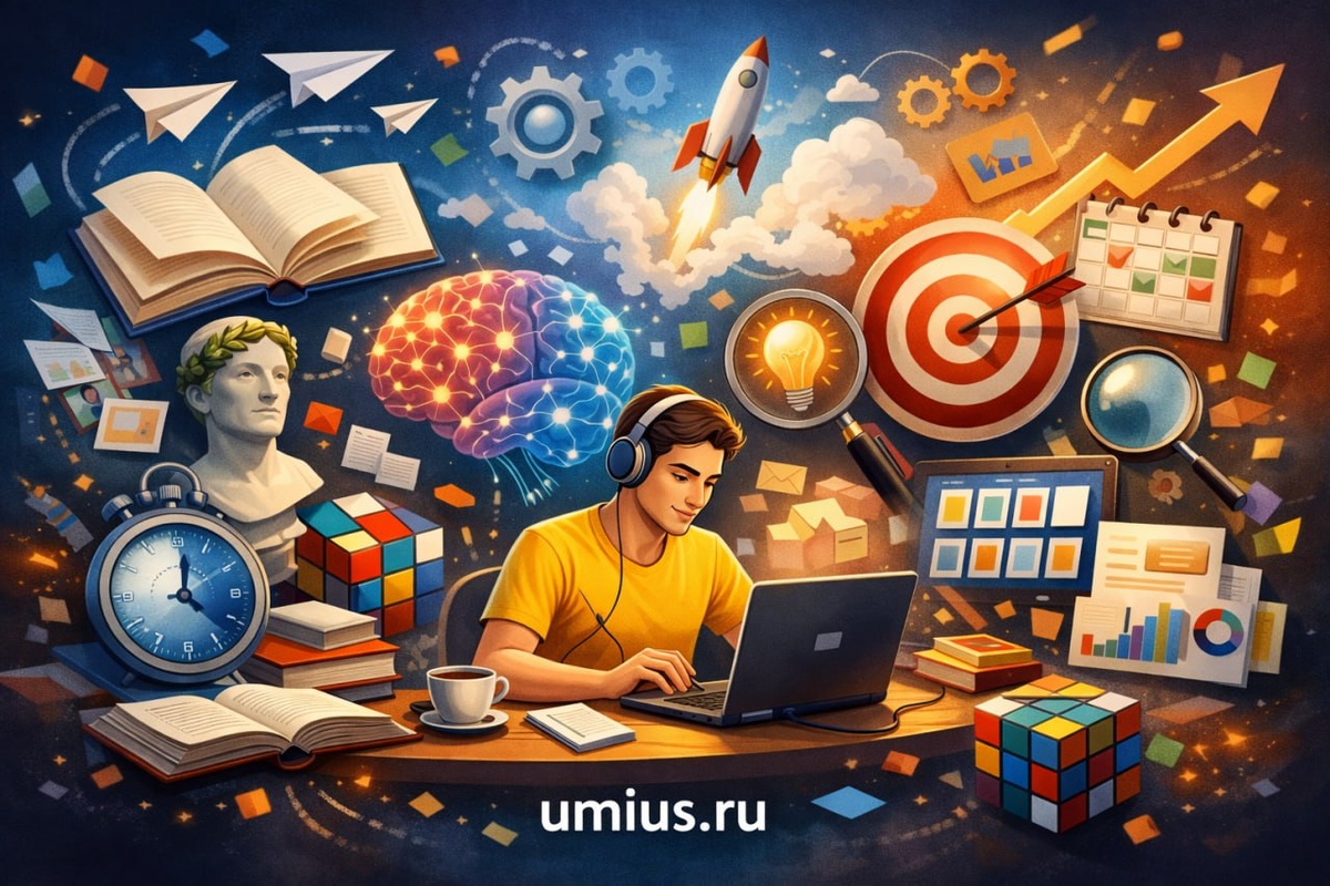 … 🎉 Отгуляли. Выдохнули. И ворвались в трудовые будни - пусть и 19 января, зато с ясной головой и правильным настроем. Новый год - это не только про салаты и сериалы. Это еще и про апгрейд себя. А лучший момент начать - именно сейчас, когда ритм возвращается, а цели на год уже маячат на горизонте. В УМИУС мы как раз про такой апгрейд: Скорочтение - чтобы читать быстрее, понимать глубже и экономить часы каждый день Мнемоника - чтобы информация не вылетала, а надежно укладывалась в память Работа с вниманием и мышлением - чтобы голова действительно работала, а не просто была занята И важный момент 👉 это не "посмотрел видео и забыл". Под каждую из этих программ есть интерактивные тренажеры в личном кабинете: -ежедневная практика; -отслеживание прогресса; -упражнения, которые реально прокачивают навык, а не создают иллюзию обучения. Это как спортзал для мозга: можно сколько угодно читать про технику, но результат появляется только когда тренируешься. Если ты давно думал: "Надо чит