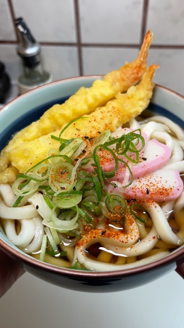 Сегодня готовлю простой ужин для семьи - лапша Удон в горячем бульоне. Это одно из любимых блюд моего сына. В Японии продают много готовых продуктов, например лапша Удон. Её нужно отварить 3 минуты. Ещё в продаже есть вот такой соус, который называется Цую. Его нужно развести с водой и вскипятить, получится вкусный горячий бульон для лапши. Ещё сегодня я купила креветки в кляре Темпура. Зеленый лук Неги. Камабоко - это рыбное суфле, приготовленное на пару. Выкладываю ингредиенты, заливаю горячим бульоном и сверху посыпаю смесью перцев. Такой ужин можно собрать буквально за 5 - 7 минут. Очень выручает, когда нет времени готовить. Получается вкусно, а горячий бульон согревает в холодное время года! Ещё больше о том, что едят в Японии на моей странице!