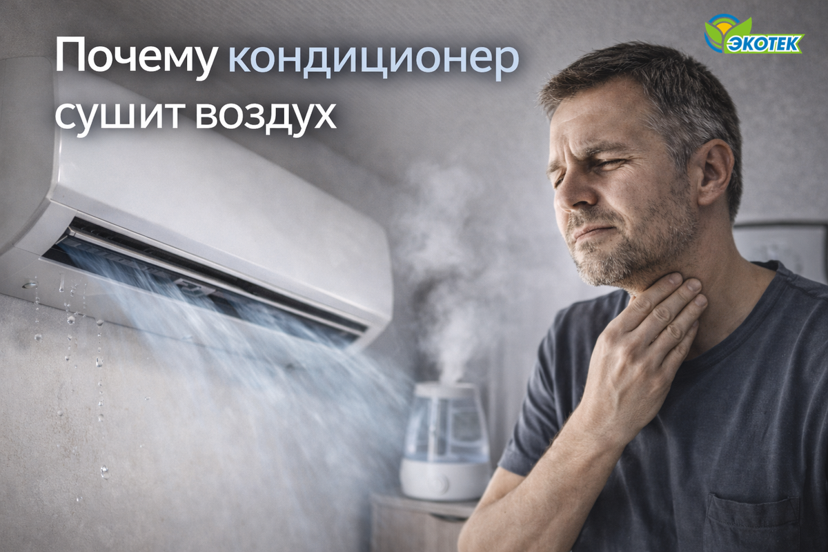 Многие уверены, что кондиционер просто «гоняет воздух». На самом деле во время работы он активно влияет на влажность, и именно поэтому появляется ощущение сухости в носу, горле и глазах. Разберёмся, почему это происходит и когда сухой воздух — норма, а когда признак ошибки в эксплуатации. Когда кондиционер охлаждает помещение, он пропускает тёплый воздух через холодный теплообменник. Происходит простой физический процесс: Именно поэтому из кондиционера постоянно «капает вода». То есть кондиционер не вытягивает влагу намеренно, а удаляет её как побочный эффект охлаждения. Комфортная влажность для человека — 40–60%. Когда кондиционер работает долго, особенно в режиме максимального охлаждения, влажность может снижаться до: При этом появляются: Температура может быть комфортной, но микроклимат — нет. Чем выше уличная температура, тем больше влаги содержит воздух.