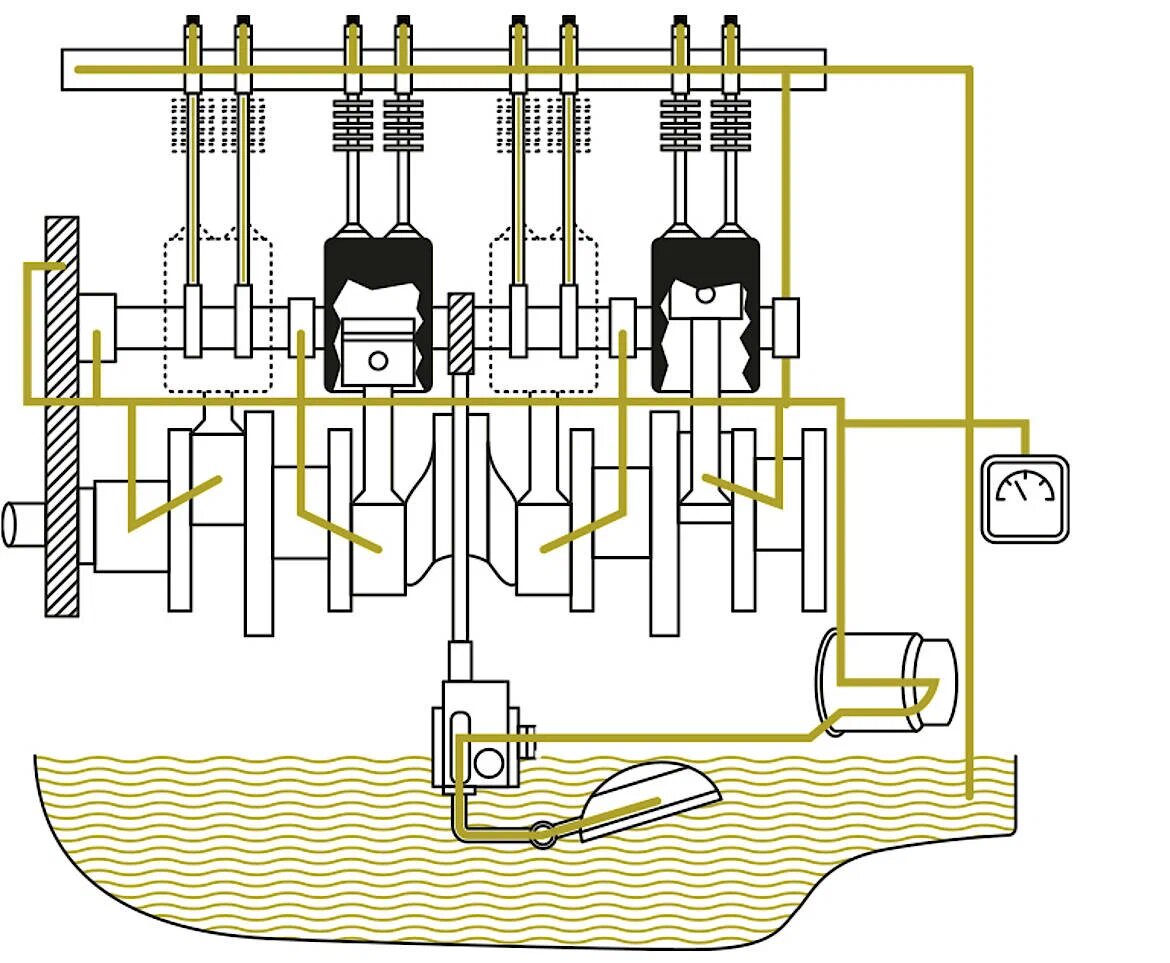 Система смазки в двигателе разработана для снижения трения и износа трущихся пар деталей. Помимо выполнения своей основной функции, система смазки обеспечивает охлаждение деталей двигателя, удаление нагара и продуктов износа, а также защиту деталей двигателя от коррозии. Система смазки двигателя включает поддон картера двигателя маслозаборником, масляный насос, масляный фильтр, масляный радиатор, которые соединены между собой трубопроводами и каналами. Они то больше всего и подвержены забиванию коксовыми отложениями. А кроме каналов шлам и отложения хорошо оседают на поршнях. Старые отложения трудно вымыть при замене масла без присадок. Шлам прилипает к деталям или забивает масляные каналы и не вымывается при простом сливе масла. Обильные отложения в двигателе приводят к потери компрессии, повышенному шуму и износу. А кроме того, химическая реакция сразу портит свежезалитое масло. Для обеспечения полноценной работы двигателя, поршневые кольца должны оставаться подвижными. Однако коксо