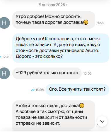 Недавно один из моих дней начался вот с такой переписки по поводу стоимости Авито доставки. Продаю я школьную винтажную юбку. Назвала ее "юбка школьная СССР", но на самом деле это уже не СССР. СССР развалился, когда я заканчивала школу. Юбка эта не моя. Моя школьная форма состояла из шерстяного коричневого платья и фартуков (черного или белого). Была еще пионерская форма: белая рубашка и юбка, похожая на эту, только синяя. Пионерская, начиная с 4 класса. А эта юбочка, нашла я ее у мамы, была серо-голубой и очень маленького размера. Как будто на первоклашку. Возможно, ее носила моя сестра. Но фасон прям советский. Не думаю, что я сильно слукавила, вставив слово "СССР". Юбка была с изъяном: со сломанной молнией. Она долго висела. Её смотрели, но никогда по ней не было никакой переписки. И тут нашелся покупатель, которого мой товар заинтересовал, но вот незадача, доставка стоит в три раза больше самой юбки! Женщина искала на Авито товары для оформления школьного музея. Я понимаю, что е