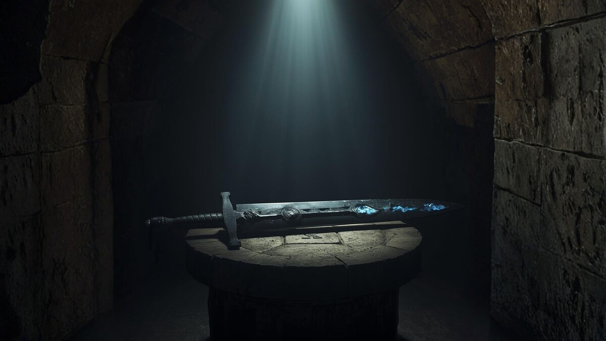 Рациональное объяснение: Это классический мифологический мотив (как Экскалибур). Но что, если в основе лежала находка древнего, корродированного меча из необычного металла, который позже перековали? Археологии известны случаи, когда железные века использовали и перековывали артефакты бронзового века как драгоценное сырьё.